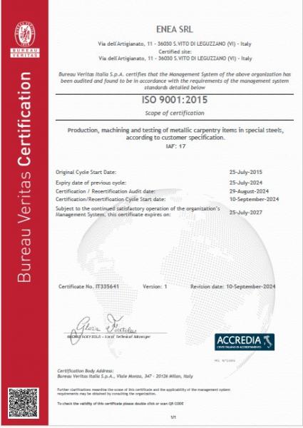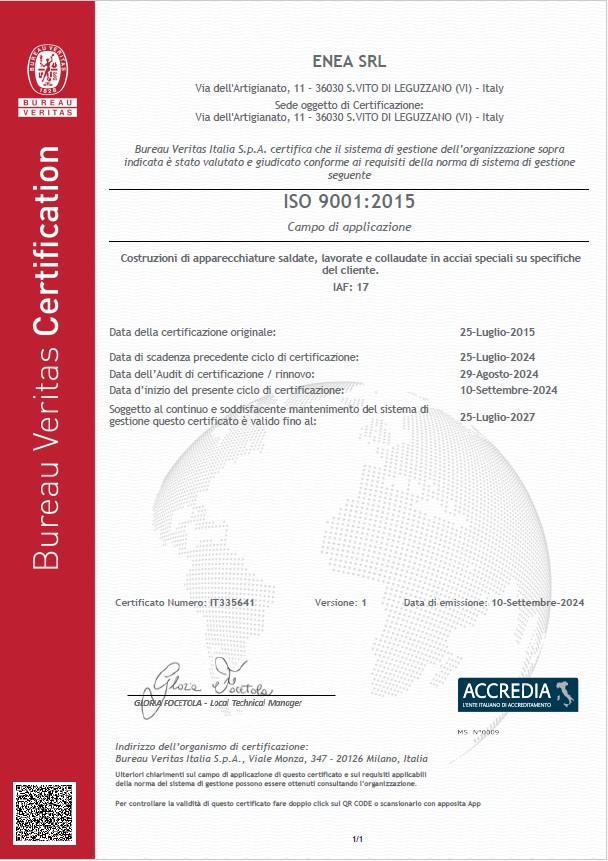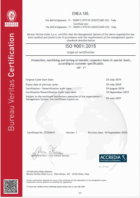 ENEA Srl si propone di offrire una gamma vasta e sempre innovativa di lavorazioni in relazione al campo di applicazione del suo Sistema di Gestione per la Qualità.